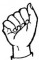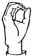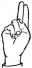 На ћирилици написано МИОДРАГ БИБЕР састоји се из 12 слова [?]. Исписано ћириличном једноручном азбуком за глувонеме:
